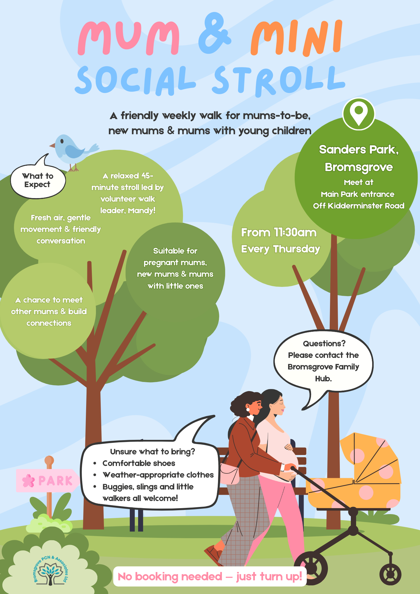 A friendly weekly walk for mums-to-be, new mums & mums with young children, designed to create a relaxed space to get outdoors, enjoy gentle movement, and connect with other local mums.